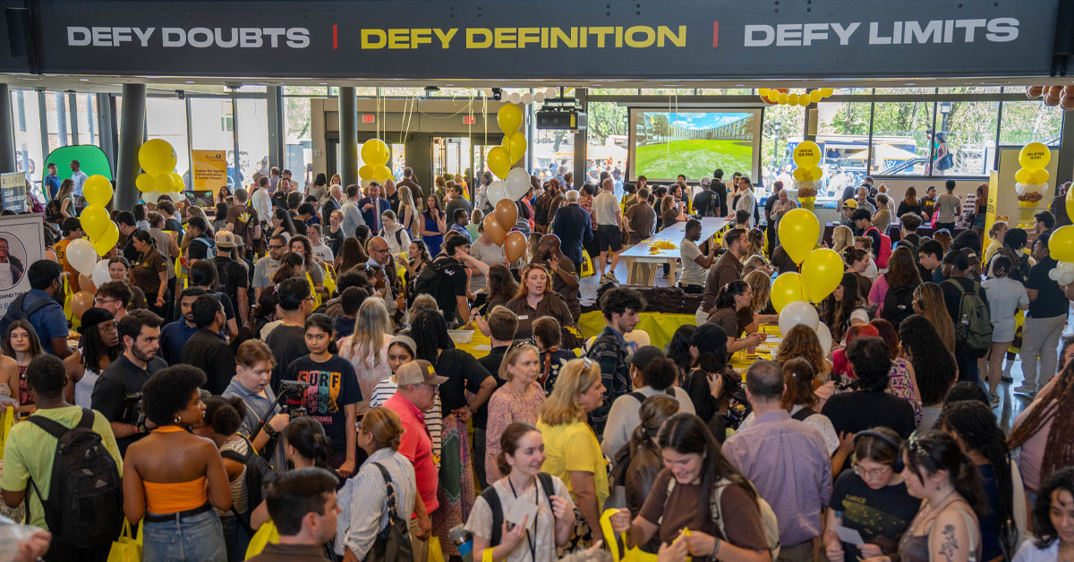 The midday launch event, Defy Definition…Live!, marked the first large‑scale, on‑campus activation of a marketing campaign already visible throughout the region on billboards, television ads, digital platforms and national broadcasts. Hundreds of students gathered with faculty, staff and University leadership for an event designed to feel less like an announcement and more like an experience.